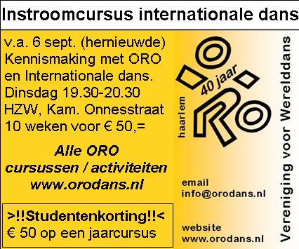 naam ORO, maar natuurlijk voor alle internationale dansgroepen in de ruime