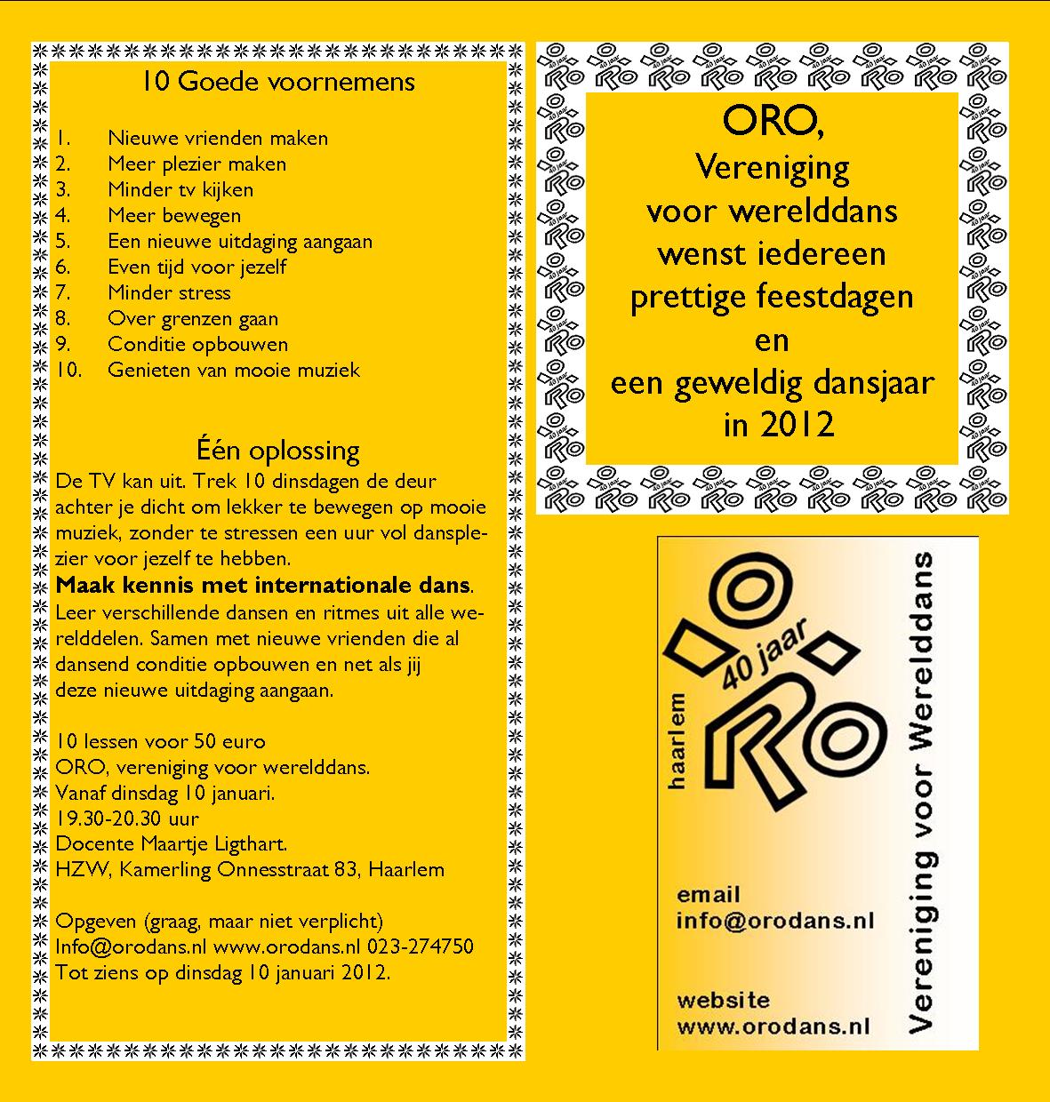 7 januari: ORO nieuwjaarsfeest: kijk op www.orodans.nl