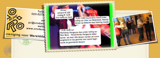 13.30-16.00 Dansworkshop Hongaarse dans onder leiding van Marc Bout. Waar Hongaarse dans bekent staat om de parendansen zal Marc ook kring en rijdansen aan leren, Het niveau wordt aangepast aan de groep en zowel de beginnende als gevorderde dansers zullen verrast en uitgedaagd worden door Hongaarse muziek en dansstijl en ritmes.