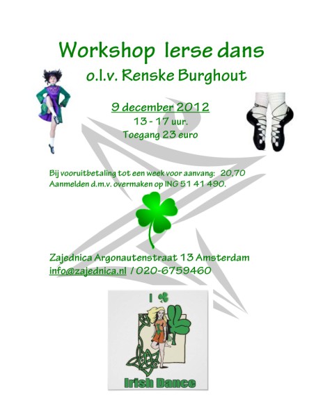 Op 9 december: dansdag Iers o.l.v. Renske Burghout.