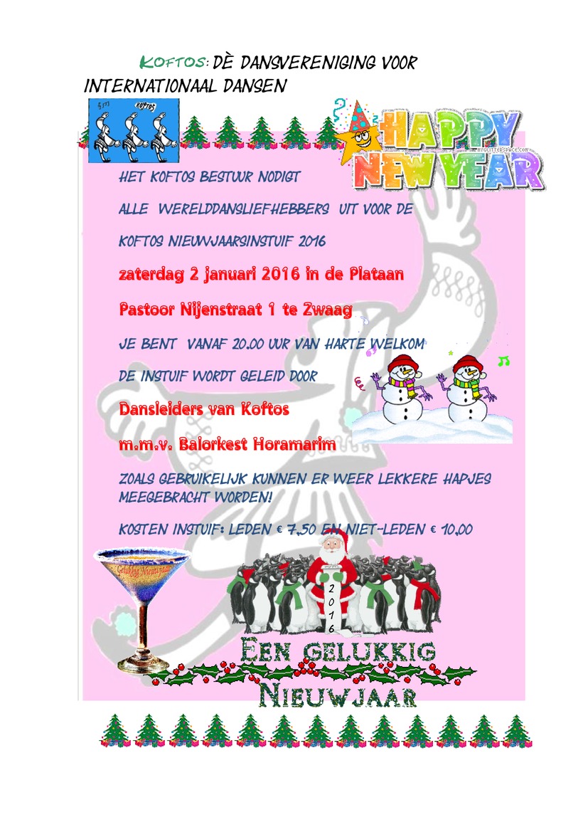 [aankondigingen] Nieuwjaarsinstuif bij Koftos op zaterdag 2 januari 2016