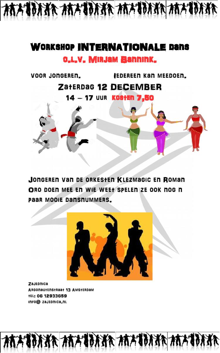 * zaterdagmiddag 12 december: dansworkshop Internationaal voor
