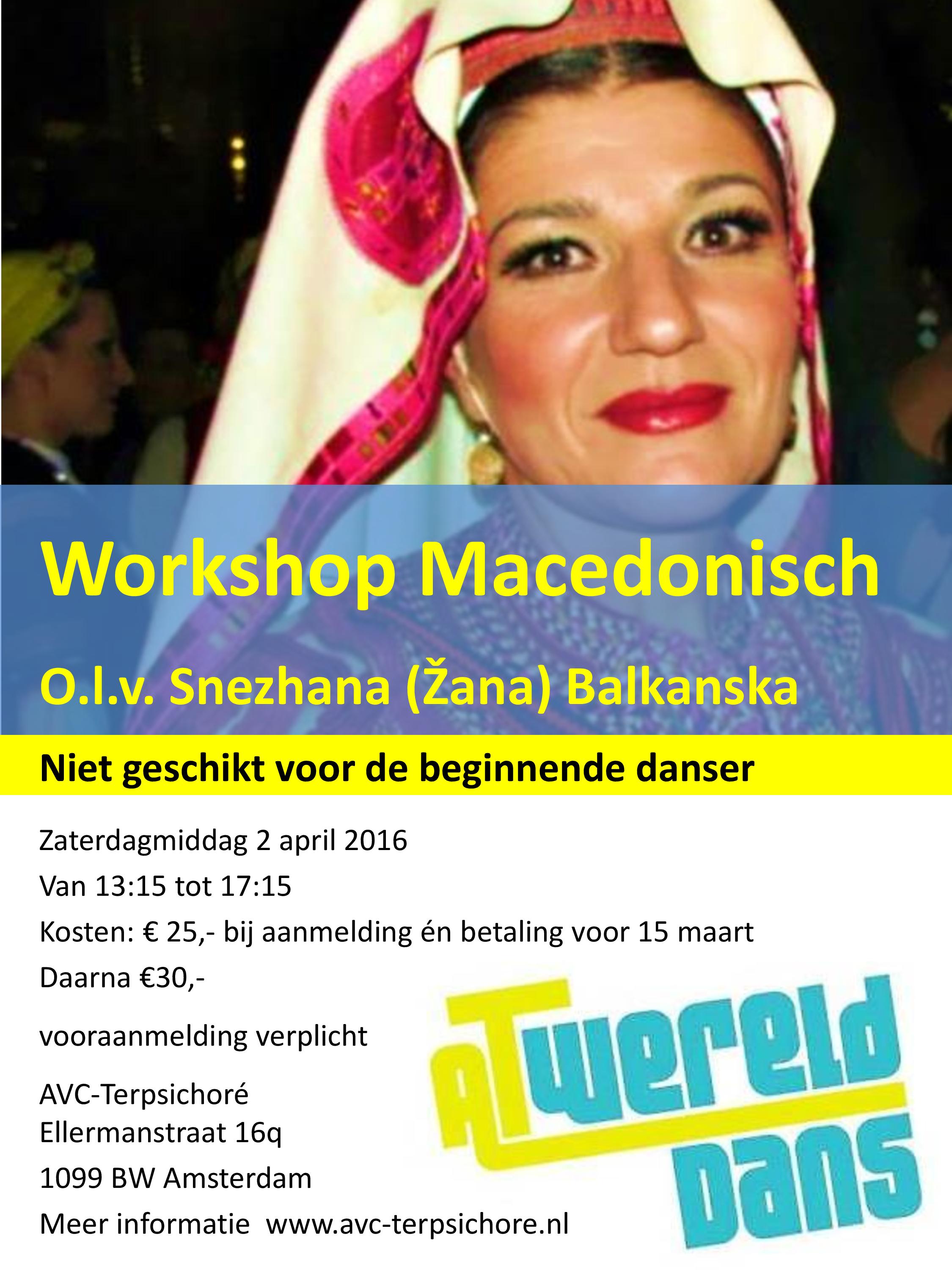 zaterdag 2 april Workshop *Macedonisch *o.l.v. *Snezhana *(*Žana*)
