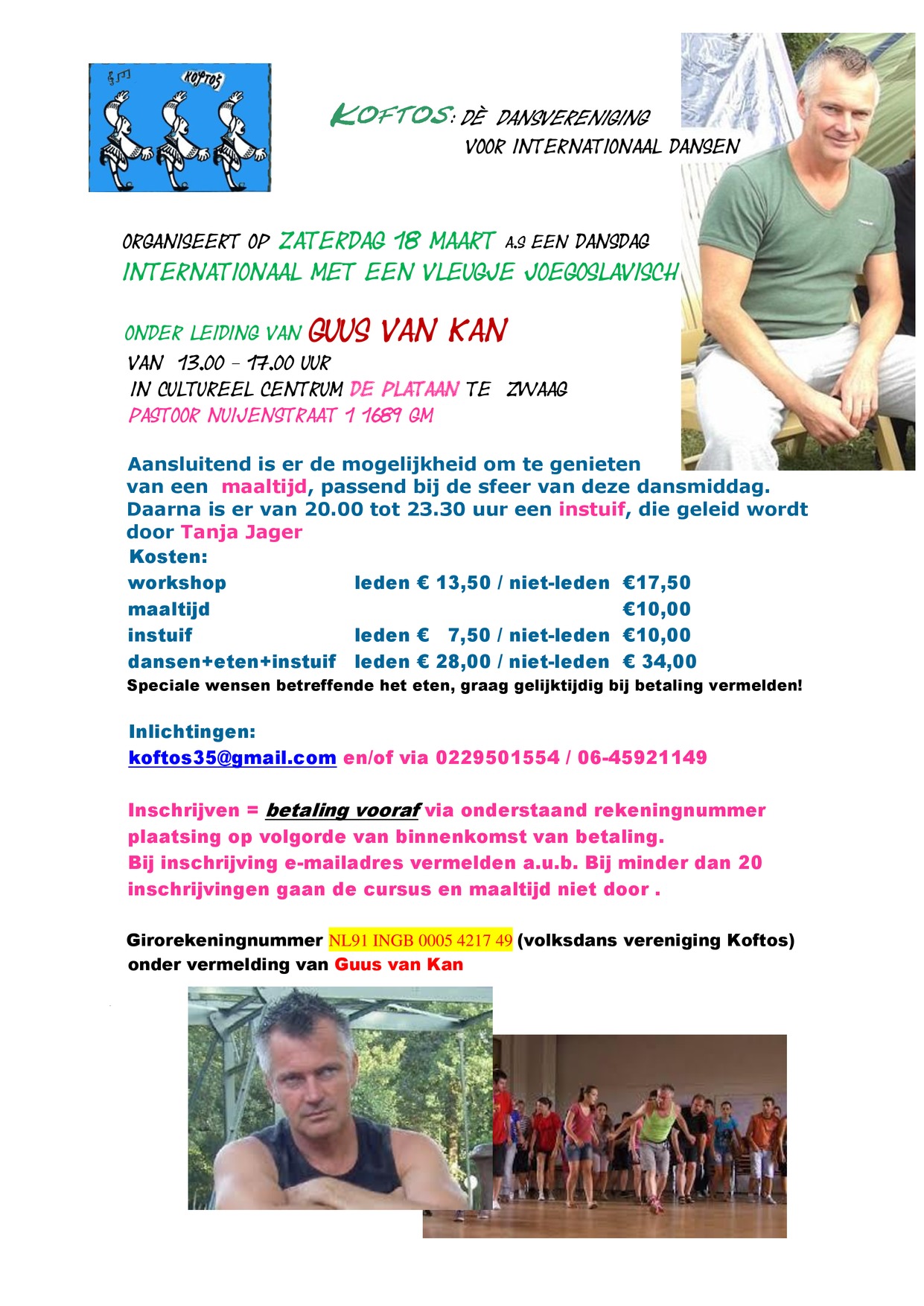 [aankondigingen] Koftosdansdag met Guus van Kan op 18 maart
