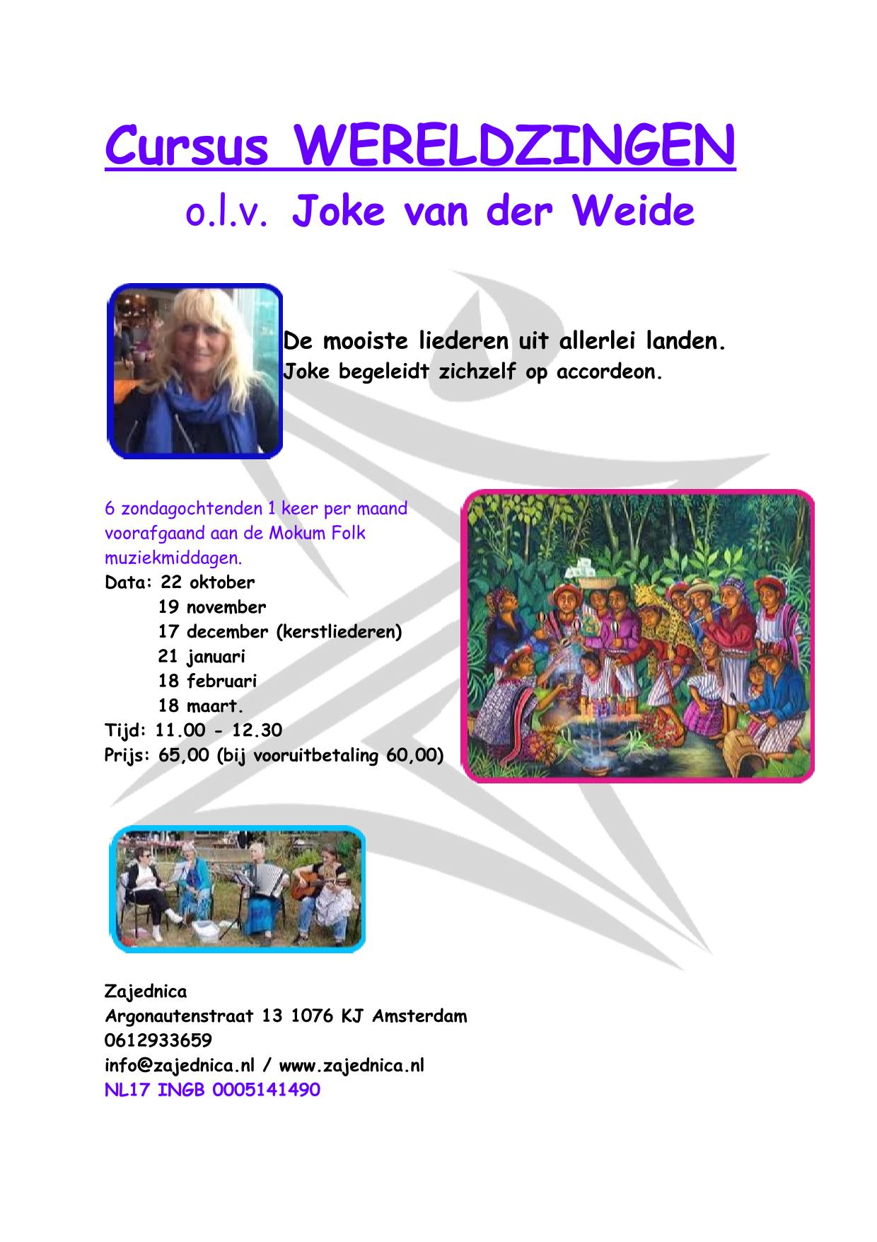 **22 okt. Wereldzang o.l.v. Joke van der Weide 11-12.30 *