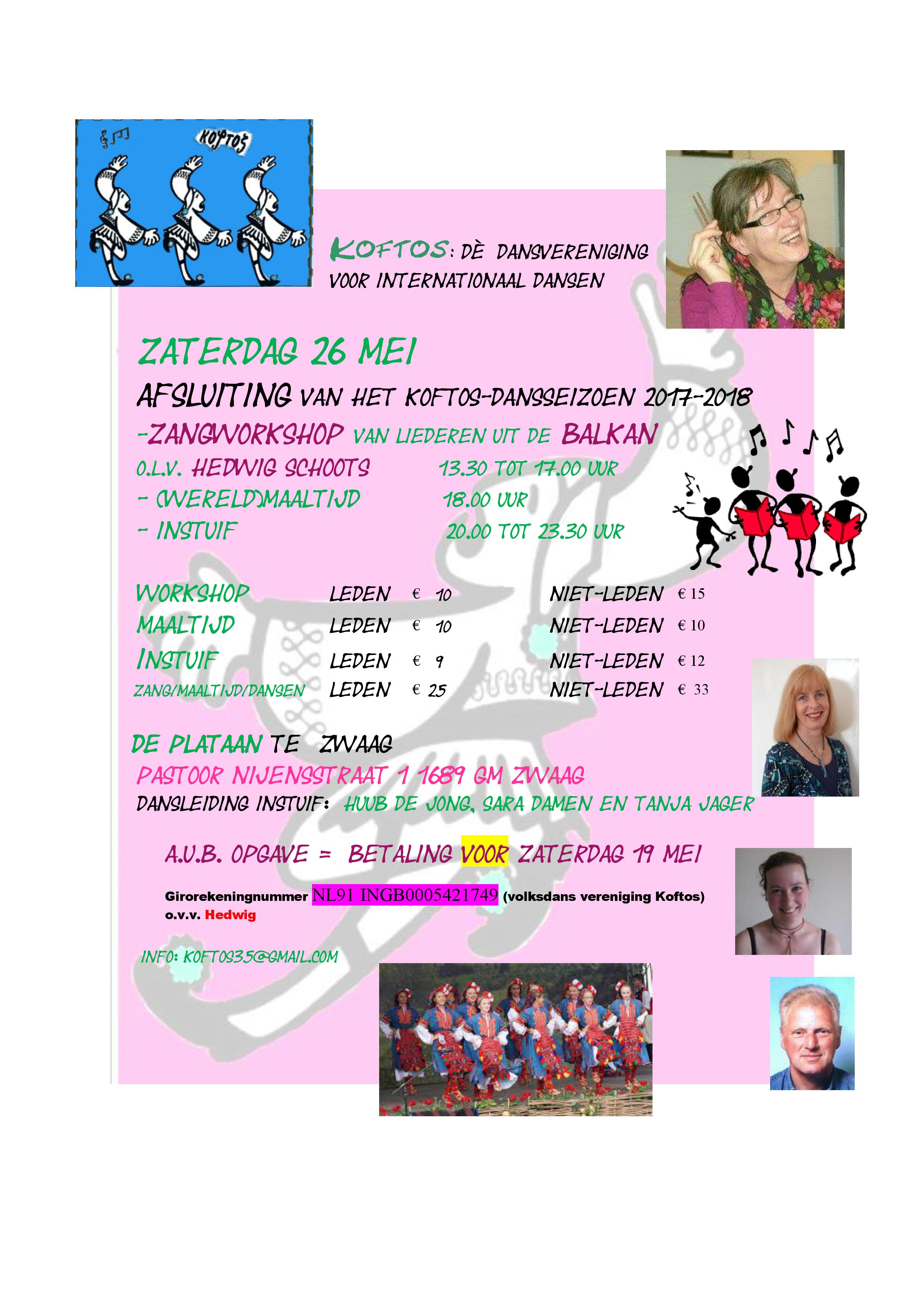 [aankondigingen] Zangworkshop bij Koftos op 26 mei in de Plataan te Zwaag