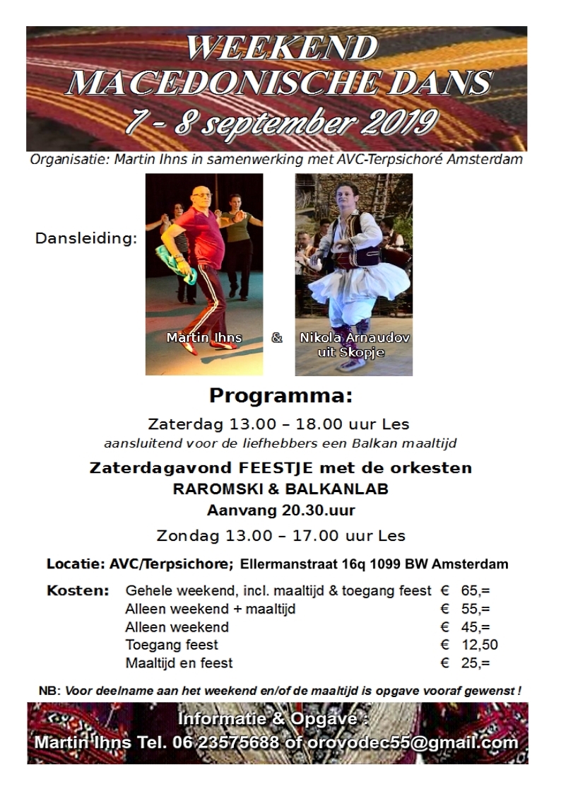 [aankondigingen] Macedonisch Weekend 7-8 september 2019
