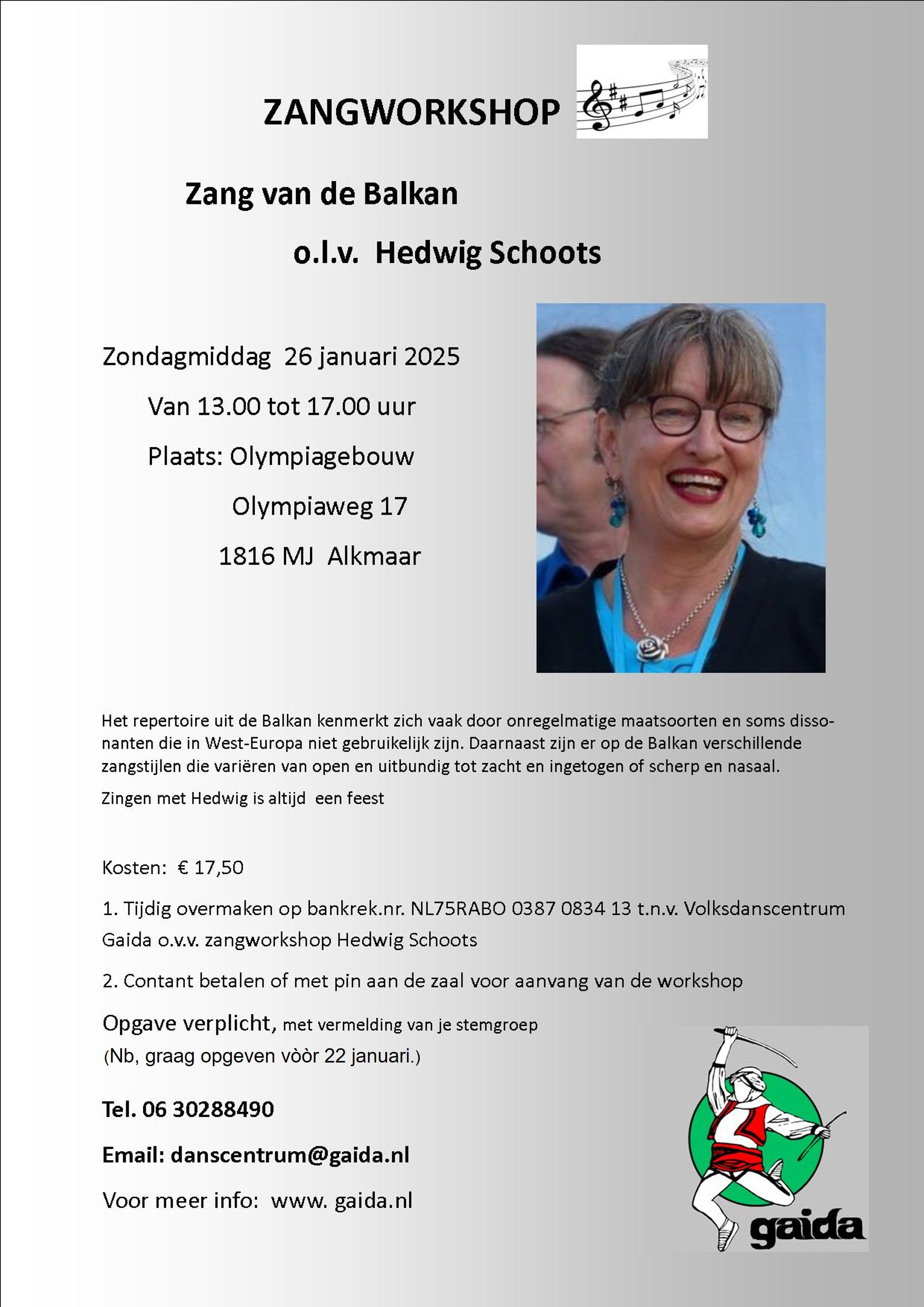 [aankondigingen] Gaida Zangworkshop Balkan met Hedwig Schoots 26 januari 2025